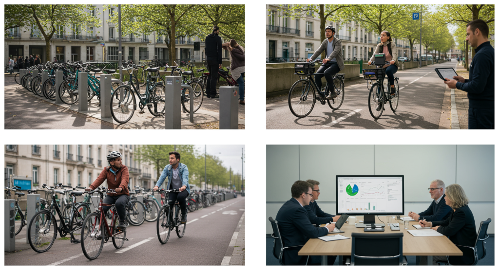 - Taux d’utilisation par vélo : mesure immédiate de la rentabilité et de la pertinence de l’offre – par type de vélo, par secteur, par période.